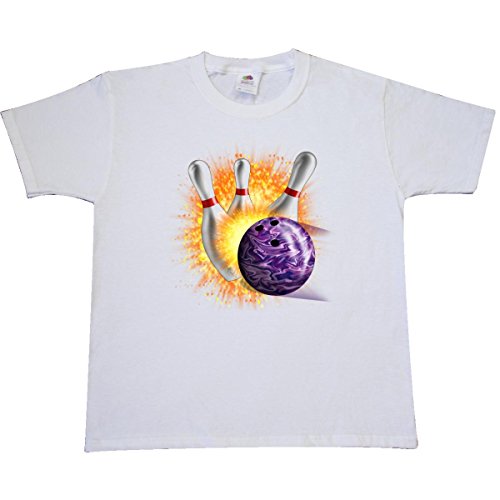 This purple bowling ball looks like it’s going lightning fast as it knocks down three white bowling pins! If you’re a fan of bowling, or are part of a bowling team, this Bowling Strike Youth T-Shirt and would definitely make a great gift!